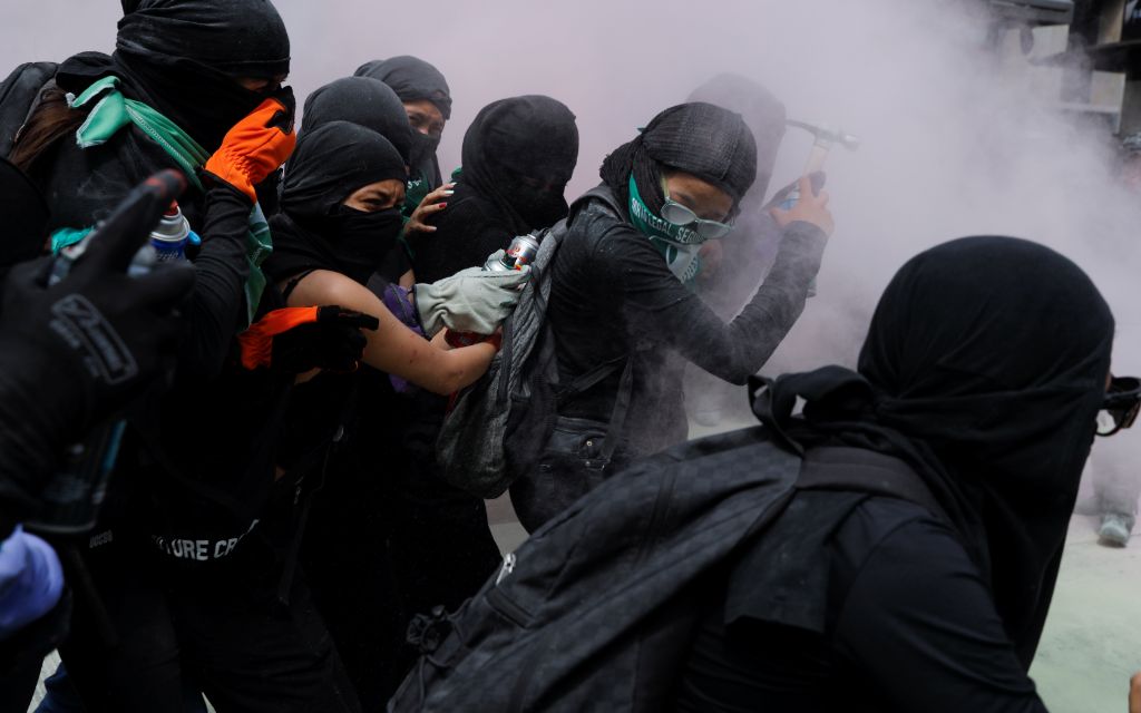El domingo un grupo de unas 40 feministas que mantiene ocupada la sede de la Comisión Nacional de los Derechos Humanos (CNDH) protagonizaron enfrentamientos con agentes que impidieron su marcha.