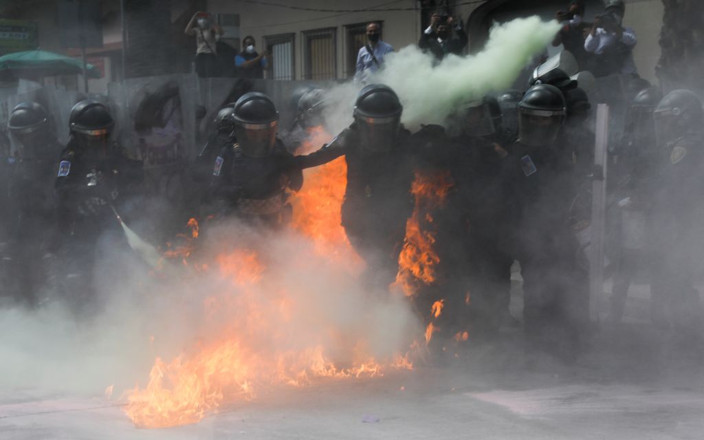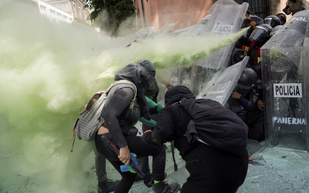 Imágenes de la protesta muestran a participantes lanzando botellas con líquidos flamables, así como a agentes de la Policía Capitalina rociando a las manifestantes con gases de colores.