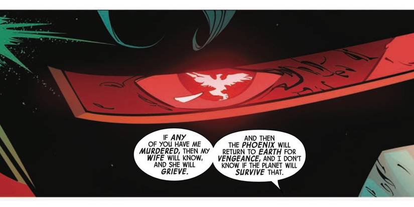 En X-Men #10 Por Jed Mackay y Netho Díaz, la agencia o*n*e ataca a la base de Alaska X-Men, y cuando el agente Lundqvist amenaza la guerra contra los X-Men, Cyclops deja caer la amenaza que si lo mata, el Phoenix destruiría el planeta. Esta advertencia oscura consigue que se retire, pero también enfatiza una posibilidad aterradora de que la muerte de Cyclops pueda desencadenar a un Jean Gray vengativo para terminar con el mundo.