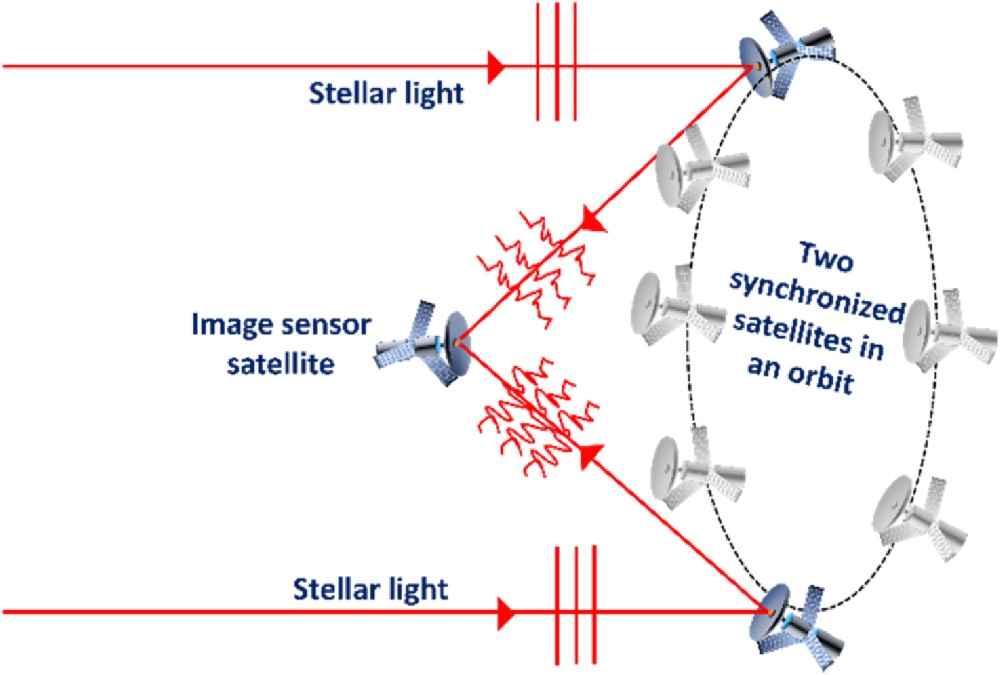 Como se documentó en un artículo publicado hoy en Optica, el equipo salta los métodos existentes de manera interesante. Dos satélites se mueven en sincronía alrededor del borde de un círculo, recolectando datos sobre la marcha y transmitiéndolos a un tercero estacionario; este círculo describe la apertura sintética que están creando las dos cámaras.