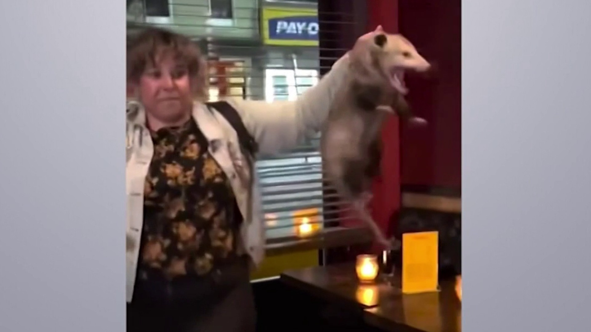 El video muestra a Fulton agarrando a la zarigüeya por el cuello, luego ella sale del bar y envía al travieso mamífero devuelta a la calle, si ni siquiera despeinarse.