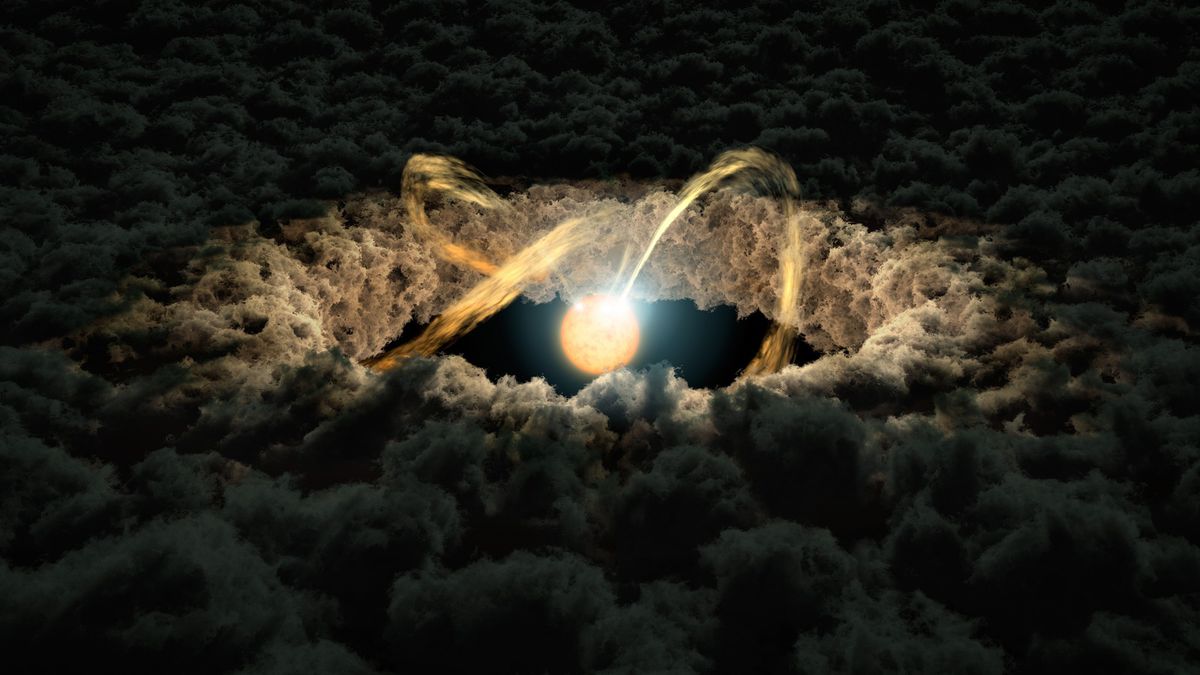 A veces los discos protoplanetarios son tan densos que no dejan ver la luz de la propia estrella nonata o ya formada que está en el centro del disco y cuya gravedad y radiación dominan el comportamiento del disco. Pero el estudio de la luz dispersada por el polvo nos permite saber cómo es esa estrella o proyecto de estrella. Es como en nuestro sofá, no veíamos el Sol pero parte de su luz nos llegaba reflejada por las motas de polvo.
