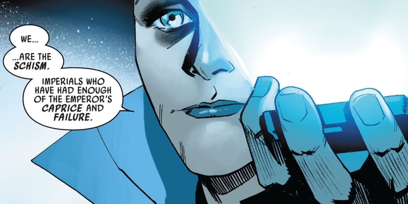 Vale la pena señalar que Moore hizo un discurso convincente sabiendo que es el Camino de los Sith donde el aprendiz debe volverse más fuerte que su maestro y matarlo, o falla y finalmente es destruido en el esfuerzo. Como tal, Moore ofrece el Cisma para ayudar a que Vader esté listo para derrocar finalmente a Palpatine de una vez por todas.. Según Moore, el Cisma se compone de “un puñado de los millones de herramientas olvidables del Imperio”, afirmando que el burócrata adecuado en el lugar correcto puede ofrecer un poder inmenso.