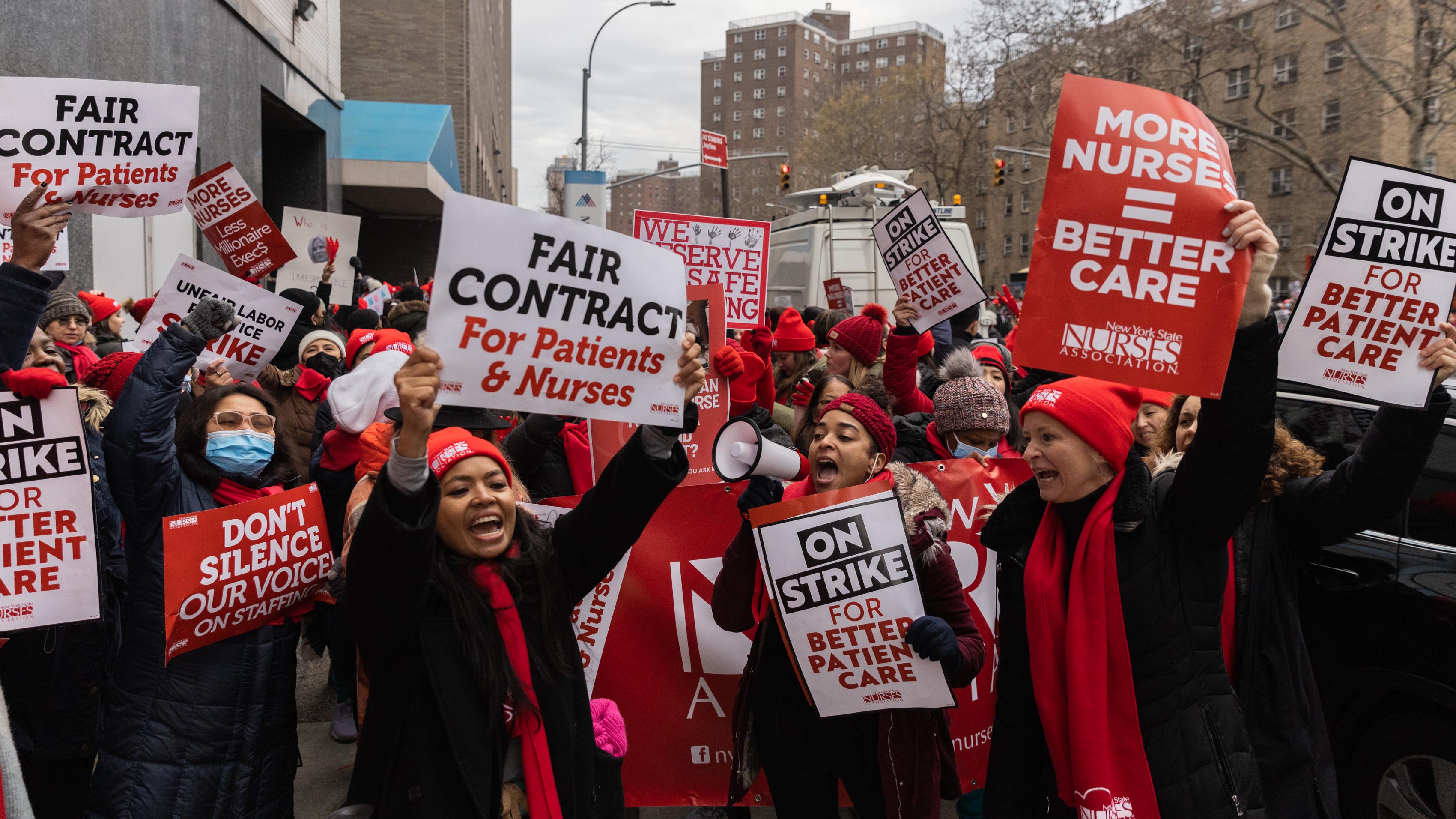 La huelga, que comenzó a las 6:00 a.m., involucra a unas 3,500 enfermeras en el Centro Médico Montefiore en El Bronx y alrededor de 3,600 enfermeras en el Hospital Mount Sinai en Manhattan.
