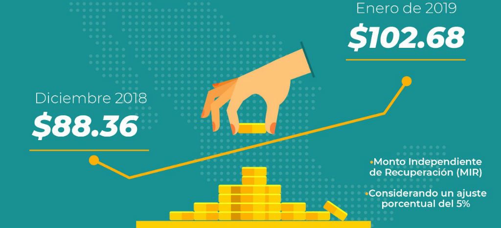 Es de 102.68 pesos diarios en general y de 176.72 pesos diarios en la frontera norte del país.