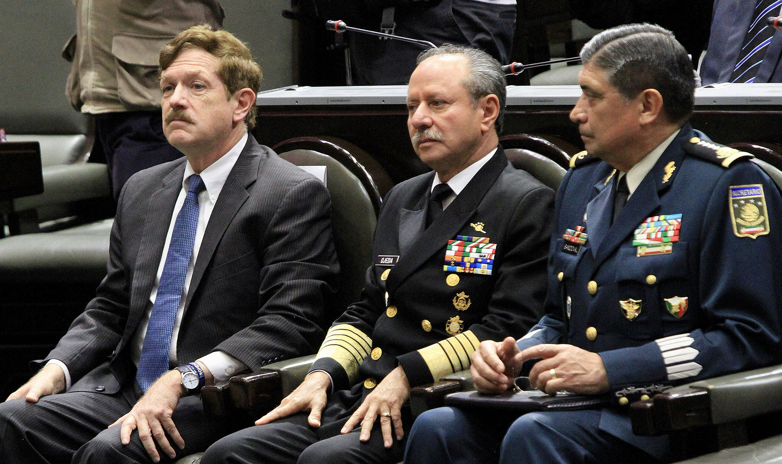De manera inédita, a la comparecencia de Durazo asistieron -y estuvieron en primera fila- los titulares de la Defensa Nacional, Luis Cresencio Sandoval; y de Marina, Rafael Ojeda, así como el consejero jurídico Julio Scherer, además del titular del Centro Nacional de Inteligencia (CNI), el general Audomaro Martínez Zepeda.