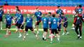 En una sesión completa con balón desde los ejercicios iniciales, el cuerpo técnico incidió en el ensayo de lanzamientos a puerta en varios ejercicios y una competición que enfrentó a los jugadores. Debían golpear con las dos piernas en un ejercicio en el que se lució David de Gea con grandes intervenciones a los lanzamientos desde la frontal.