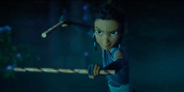 Fue una oportunidad para nosotros de mostrar la fisicalidad de Namaari de una manera realmente genial, pero también demostrar que se preocupa por su gente. Y hombre, fue genial. Fue realmente genial. Pero funcionó demasiado bien, porque en ese momento de la película, ella necesita ser la mala; ella necesita ser la villana y la antagonista. Pero todos comenzamos a girar hacia el lado de Namaari, así que desafortunadamente, tuvimos que cortarlo por esa razón. Pero es genial, así que tal vez en el futuro podamos mostrar eso.