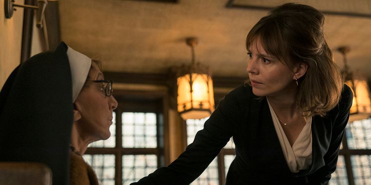 Es muy mundana, aunque es monja y vive en esa iglesia. Creo que entiende la naturaleza humana, pero también creo que su misión se ha vuelto más intensa y no quiere perderlo. Es una persona muy singular en la iglesia. Ella tiene poder, y sabe que él tiene poderes como los de ella que solo tiene que cultivar. Y ella es la persona que lo va a ayudar, pero él tiene más dudas por culpa de Kristen, como puedes ver en los primeros [episodes]. Eso está siempre presente.