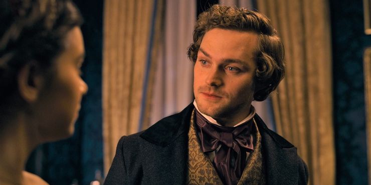 Finn Jones: Investigué un poco sobre Sam Bowles. Tenía curiosidad por saber quién era, históricamente. Pero estaba más interesado en cómo podría relacionarme con él en un contexto moderno. Observé lo que hizo, trayendo una nueva tecnología a una sociedad, similar a algo como Twitter. Entonces yo estaba como, “Está bien, ¿quién dirige Twitter?” Es este tipo llamado Jack Dorsey. Entonces, ¿cómo es él? Y tratando de establecer paralelismos entre un joven multimillonario tecnológico y Sam Bowles. Ahí es donde estaba mi cabeza.
