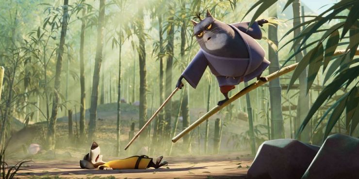 Acepté el papel, y él es el mejor samurái de este señor, que es un pequeño gato en miniatura, y este gato tiene un ego del tamaño de una montaña. Es muy arrogante, muy agresivo y muy egocéntrico. Puedo enseñar algo a través de este personaje, y tenemos estos opuestos juntándose, como en la vida, tenemos muchos opuestos.