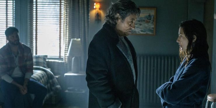 Ian McShane: Volvemos constantemente a qué es el libro y cuál es el plano del libro para el programa de televisión. Esta es nuestra tercera temporada de un programa diferente, por lo que las ideas de han mutado constantemente durante el programa, que es lo que lo ha hecho, creo, intrigante para los críticos, los fanáticos y, de hecho, el elenco. Nunca se sabe lo que va a pasar de un minuto a otro, pero la única constante es que Wednesday está manipulando todo tanto como puede, hasta los movimientos finales. Y esa Sombra todavía está tratando de alejarse de él y convertirse en su propio hombre.
