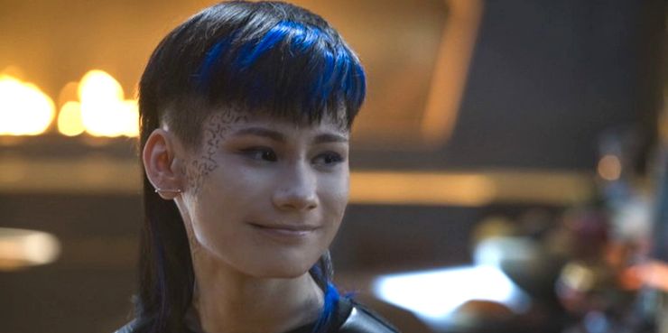 Y luego, no tuve [directed] Ian hasta el episodio 6. Ian y yo estábamos en el salón Discovery con, esencialmente, Zora como el segundo personaje de la escena y la Steadicam. Exploramos el espacio, exploramos las relaciones hip. Creo que Ian ha tenido mucha más experiencia frente a la cámara que Blu. Así que me sorprendió menos su conciencia. Es un gran personaje y [Adira and Tal] es una gran relación en el programa. [Discovery] tiene parejas con las que se puede relacionarse y que representan de manera tan hermosa lo que está sucediendo en el mundo. Estoy muy orgulloso de Discovery y creo que muchas de las personas que trabajan en él también lo están por esas mismas razones.