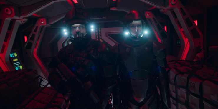 Naren Shankar: De hecho, hablamos de otros personajes. Están ahí en el libro. Tienen una especie de tripulación diferente. Cuanto más empezamos a hablar de ello, más nos dimos cuenta de que esta es una excelente manera de poner a nuestra gente en el centro de la cuestión sin presentar toneladas y toneladas de nuevos personajes. Y hay buenas razones para ello. Clarissa está a bordo del barco. Holden no quiere hacerla pública. Al tener a Holden en la silla de ese piloto, refuerza la pérdida de quién no está en la silla del piloto. Esa pérdida se cierne sobre todos en el programa de una manera muy explícita. Por primera vez es Holden el 10 por ciento asumiendo el papel de capitán. No es un héroe reacio. Está diciendo “Vamos a hacer esto” y eso es algo nuevo para él. Entonces, fue una oportunidad para enfocar todo el drama en nuestro elenco principal.