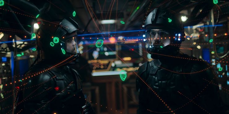 Teníamos historias como en el libro donde nos enfocamos en Prax y Anna, episodios individuales de grandes historias. Esos salieron de eso. Cuando tuvimos a Monica con Avasarala hablando de esta manera, nos dimos cuenta, “Aquí hay una manera de tocar esa idea”, poniendo esa noción de ‘matar gente está mal y es malo’ en el mundo y hablamos de que ganar una guerra requiere que ganes. políticamente también. No es solo batalla tras batalla. Obtienes pequeños pedazos de eso. Ves el efecto dominó de Monica publicando esos videos en el mundo. Tiene un efecto en Anna, con Prax, por lo que fue una forma de lidiar con esa historia de una manera ligeramente diferente impulsada por el hecho de que teníamos un lienzo algo más pequeño para trabajar.