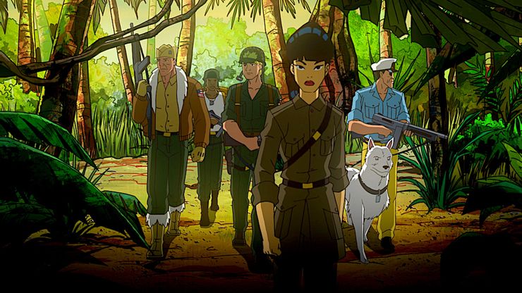 Eso hizo un ping en mi cabeza como, “Oh, sí, es New Frontier. Es esto que amo, así que tratemos de abordarlo de esa manera”. Pero luego estaba mirando las cosas de Kirby, porque esos son los personajes que usaba Darwyn, así que miramos los primeros cómics para este corto en particular y sentí que se había hecho una versión moderna de ellos en acción real, tal vez valió la pena ver dónde comenzó.