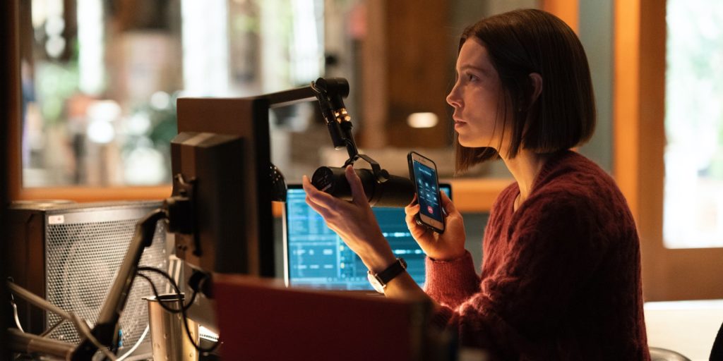 La otra cosa fue escribir el podcast en realidad. Esa parte de la adaptación fue bastante natural y fluida. Quiero decir, no quiero decir que fue fácil, es difícil como cualquier escritura, pero el proceso de adaptación en sí mismo fue algo que hizo clic desde el principio para nosotros. La parte difícil fue descifrar el personaje de Lia (Jessica Biel) porque, en el podcast, ella es muy curada. Ella es quien está elaborando la historia. Entonces, todo lo que escuchas de Lia es intencional y ella lo editó de esa manera, y quiere que escuches y conozcas ciertas cosas sobre ella, y que no sepas ciertas cosas sobre ella.