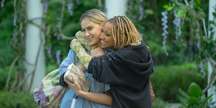 Bodies Bodies Las estrellas de Bodies, Amandla Stenberg, Maria Bakalova y Myhala Herrold, hablan sobre la filmación de escenas de lluvia y sus juegos de fiesta favoritos.