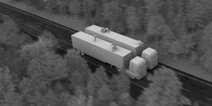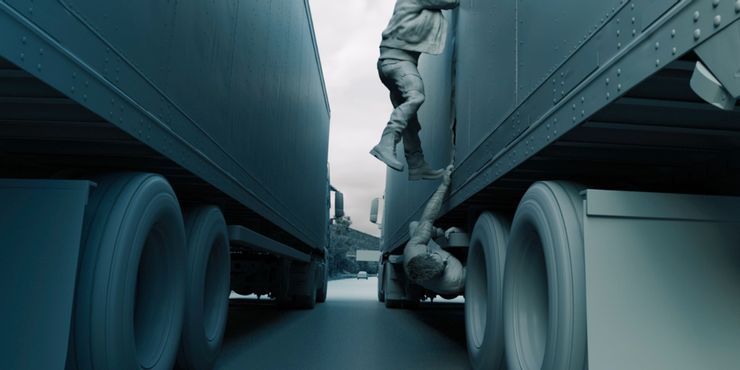 Sebastien Francoeur: Por supuesto, cuando miras la pantalla azul, es una cámara realmente estática y todo: se trata de detalles sutiles en la cámara, movimiento de la cámara, pero también proviene de la suspensión del camión. Es asegurarse de que tengamos algún tipo de movimiento en la camioneta, tengamos la rueda … bueno, las ruedas reaccionen a la carretera, obteniendo esa pequeña vibración de la cámara que va en la parte superior. Fue profundo, pero básicamente los hacemos. Era estático en la pantalla azul, pero cuando lo miramos en gris, en realidad parecían estar rodando. En algunos casos, estábamos cambiando una parte del camión, una parte cambiada para obtener ese giro, o simplemente ese reflejo para hacer fluctuar la luz, agregando todos esos detalles: un poco de neblina, un poco de neblina para establecer ese tipo de velocidad, pagando atención a todos esos pequeños detalles.
