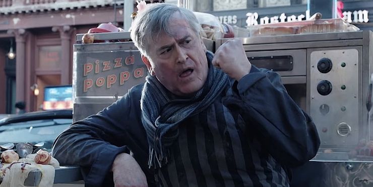 Bruce Campbell: Bueno, tengo un contrato de tres películas con Marvel. Creo que te vas a enterar, pero legalmente no puedo hablar de eso. Pero no piense en Pizza Poppa como un vendedor de pizza, eso sería un gran error al interpretar estos personajes. Te estarías vendiendo muy poco. Es un bloque de construcción; No es un cameo.