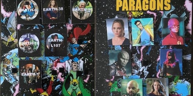 Las tablas de pitch están hechas de núcleo de espuma resistente. El tablero “Paragons” tiene las fotos de los Paragons adjuntas usando Velcro, para que puedan ser removidas y reemplazadas si es necesario. DC Comics hizo los tableros para Guggenheim y el productor ejecutivo Greg Berlanti, y Guggenheim los usó para presentar la historia de Crisis a Warner Bros., y luego a CW. Las tablas tienen aproximadamente 3 ‘de altura (aproximadamente del tamaño de un póster de película). Guggenheim ofrece pagar el envío.