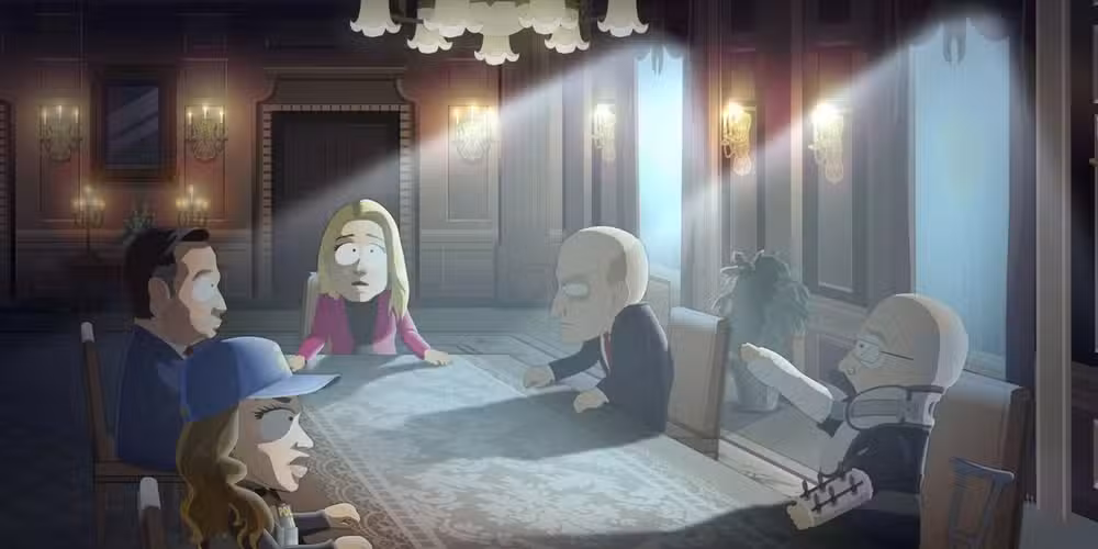 “The Crap Out” se parece más a uno de los finales de temporada de Marvel en Disney+ que a un parque del sur final de temporada. Simplemente reúne todos los diferentes hilos de la trama en el mismo episodio, los mezcla todos y espera que todos puedan atar los cabos sueltos en un enfrentamiento final en el que todo y el fregadero de la cocina.