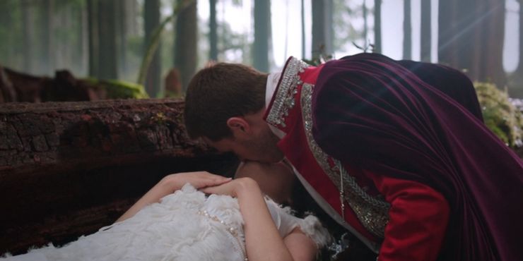 Es apropiado que el primer beso de la serie haya sido entre el Príncipe Azul y Blancanieves. Los espectadores solo tienen su conocimiento del cuento de hadas clásico para explotar cuando Charming besa a Snow y la despierta en los primeros minutos del piloto.