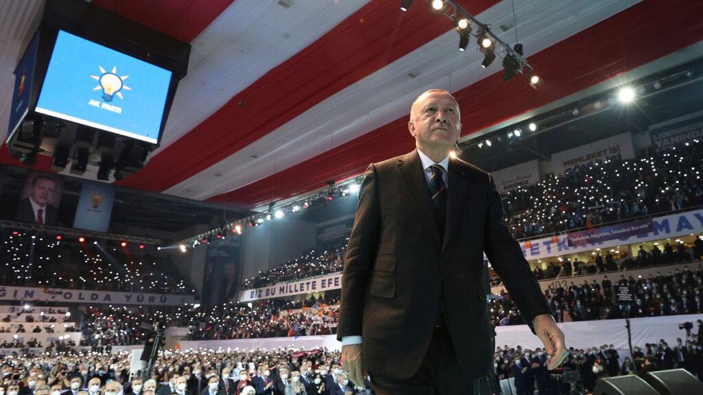 El presidente turco, Recep Tayyip Erdogan, sigue dando pasos que le alejan de la Unión Europea, a cuya puerta llamaba con insistencia no hace mucho tiempo. “¡No hay otro partido como este no solo en Turquía sino en el resto del mundo!”. Las proclamas de Erdogan resonaban el pasado miércoles tras ser nuevamente elegido por aclamación líder de su Partido de la Justicia y el Desarrollo (AKP) en el séptimo congreso ordinario de la formación islamista, durante el que dedicó buena parte de sus intervenciones a cargar contra la oposición. Habló sin mascarilla, si bien ya vacunado, ante miles de seguidores que atestaban las gradas del pabellón deportivo Ankara Arena, adonde habían llegado desde todos los rincones del país pese a que Turquía se halla inmersa en una tercera ola de infecciones por la covid-19 (unos 30.000 casos al día). El tono del discurso era el del político que busca la reelección, aunque el mandato de Erdogan no expira hasta 2023.