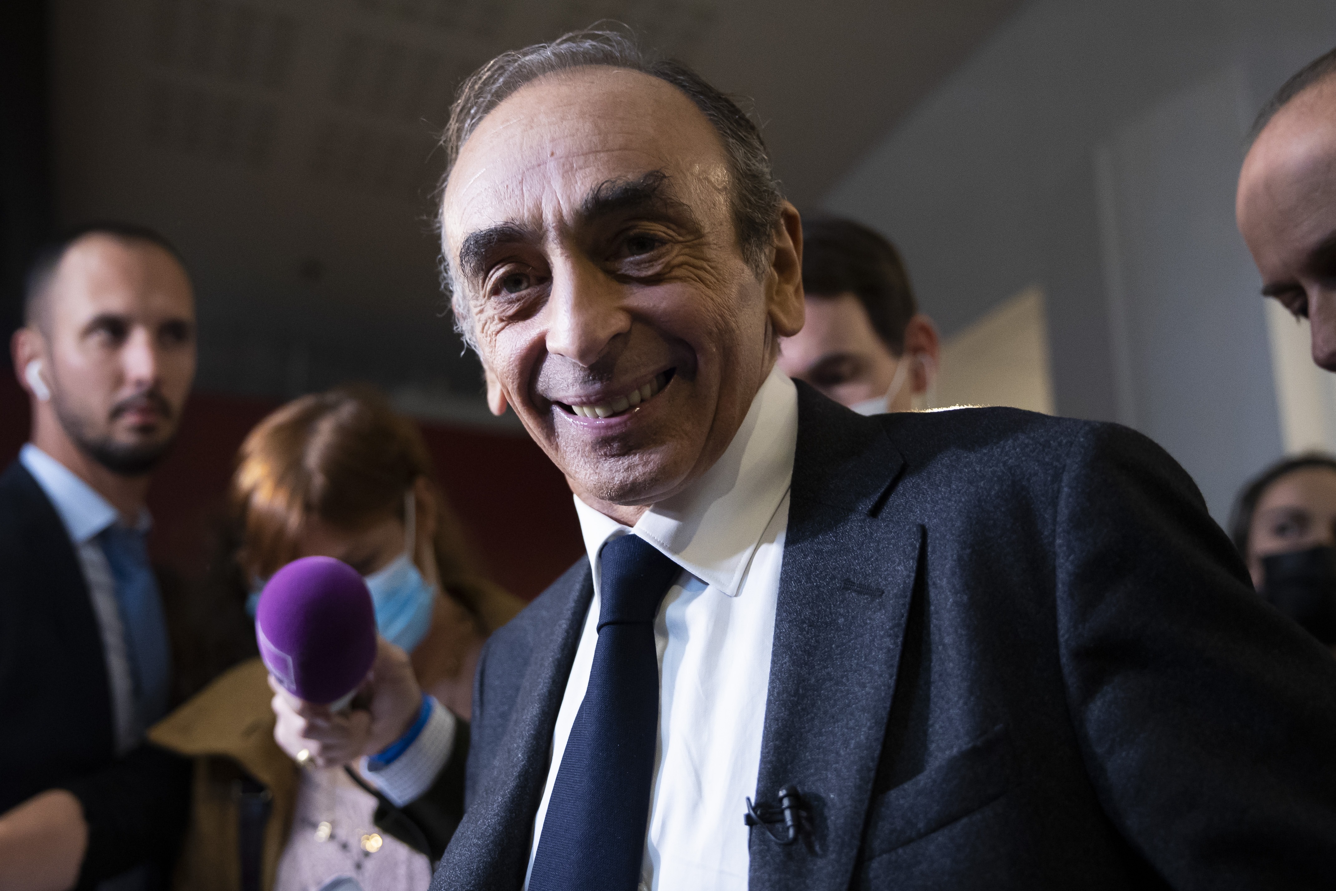 Es lunes 5 de octubre, pasada la medianoche y Zemmour se encuentra en un camerino del Palacio de Congresos de París, rodeado de su círculo más cercano –su consejera áulica, su asesor de comunicación, sus guardaespaldas– y agotado después de otra noche de baño de masas. Ha debatido durante más de dos horas con Michel Onfray, un popular filósofo procedente de la izquierda ácrata que ahora converge con los nacionalistas de la otra orilla. Después, ha pasado más de dos horas firmando ejemplares de su último libro, La France n’a pas dit son dernier mot (Francia no ha dicho su última palabra), un título que suena a versión francesa del trumpiano Make America great again (Que América sea grande de nuevo).