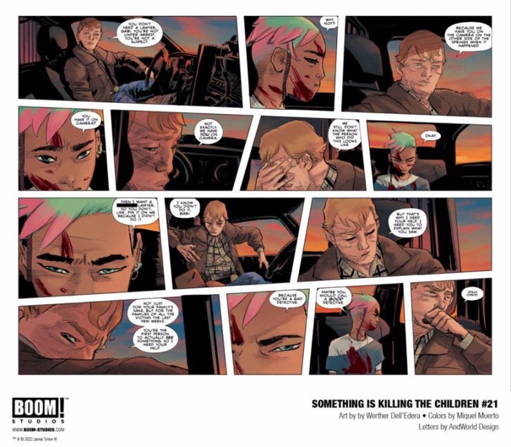 En una vista previa lanzada por BOOM! Studios, los fanáticos pueden ver por primera vez la nueva historia que comienza con Algo está matando a los niños #21. El arco comenzará un año después de los eventos de Archer’s Peak con Erica Slaughter asumiendo un nuevo caso después de que una niña afirma haber visto un nuevo tipo de monstruo. Basado en la descripción de la niña de este monstruo, Erica se da cuenta de las aterradoras implicaciones que conlleva ese supuesto avistamiento. Además, Erica Slaughter ha roto por completo los lazos con House of Slaughter, por lo que esas consecuencias potencialmente mortales también se ciernen sobre ella. La Orden de San Jorge no perdona ni olvida las transgresiones cometidas contra la familia, y los lectores de casa de la matanza sé cuán despiadada puede ser la Orden.