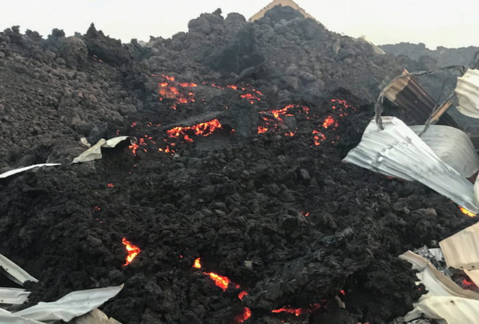 El domingo se podía ver en las afueras de Goma una franja negra y humeante de unos 800 metros de ancho, donde la lava se había enfriado hasta convertirse en escombros. En algunos puntos tenía tres pisos de altura, engullendo incluso grandes edificios y lanzando humo al cielo gris de la mañana.