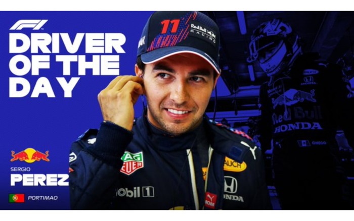 Sergio Pérez (Red Bull) tuvo este domingo una destacada actuación en el Gran Premio de Portugal, impartió cátedra en el manejo de neumáticos y finalizó en cuarta posición, siendo elegido como el Piloto del Día por segunda ocasión, tras Baréin, durante la presente temporada de la Fórmula 1.