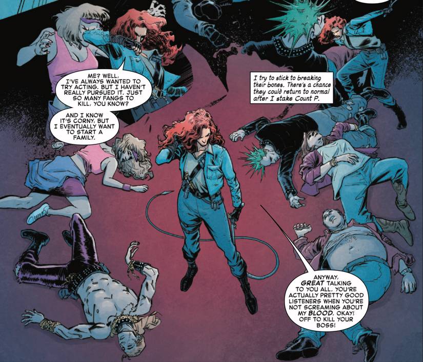 Antes de convertirse en vampiro, Mary Jane tiene una visión de su romance con Peter en todo el multiverso, e incluso se conecta con la gran red que una vez mordida el Conde Parker. El final de la historia elimina parte de su credibilidad de Slayer de vampiros, con ella aparentemente se vuelve malvada junto al Conde Parker como su amante destinado. El descenso de Mary Jane a la villanía significa que el estatus de Blade, ya que el mejor cazador de vampiros de Marvel probablemente esté a salvo, pero definitivamente hay más de la historia de Mary Jane que se puede contar que podría desempacar sus orígenes como Van Helsing e History como un asesino de vampiros en los años 80.