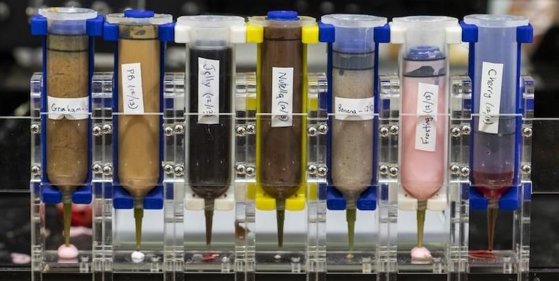 Los pasteles de queso del equipo de Columbia marcan un gran salto con respecto a intentos anteriores de impresión de alimentos en 3D, que, según señalan los ingenieros, generalmente se han centrado en menos ingredientes crudos. Sin embargo, esa complejidad adicional no viene exenta de desafíos adicionales, y se necesitaron varias rondas de prueba y error para lograr porciones de pastel que pudieran permanecer estructuralmente intactas. ¿La clave? Una base de galleta Graham. También usaron ingredientes más pesados como mantequilla de maní y Nutella para formar pequeños charcos que pudieran contener las mermeladas menos firmes y el puré de plátano para que no se derramaran por los lados.