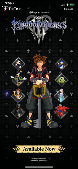 Arriba: anuncio de pantalla completa en TikTok cuando se lanza la aplicación por primera vez