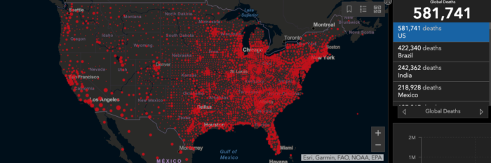 Mientras que los CDC cifraron su última estimación oficial en 575 mil 491 decesos.
