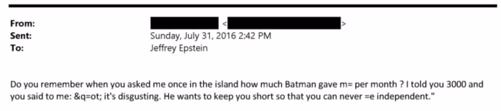 A lo largo de los documentos se repiten referencias a alguien apodado Batman por Epstein y su equipo. Dadas las intensas redacciones y el uso de palabras clave por parte de Epstein, es casi imposible saber quién es ‘Batman’ y qué hizo, pero hay algunas implicaciones oscuras.
