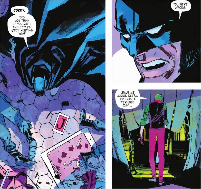 La nueva ‘amistad’ del dúo asesino llega a su punto de ruptura cuando el Joker empuja a Killex demasiado lejos. burlándose del asesino en serie ordenado para que ceda ante el desorden. Esto da como resultado que Killex le dé un revés al Joker y lo acuse de quitarle todo lo que sabía al resucitarlo. El Joker responde que simplemente “quería un amigo con quien jugar”, a lo que Killex responde diciendo: “Lo siento, ya no soy un niño…”antes de despedirse del Joker y dejarlo tirado en el suelo.