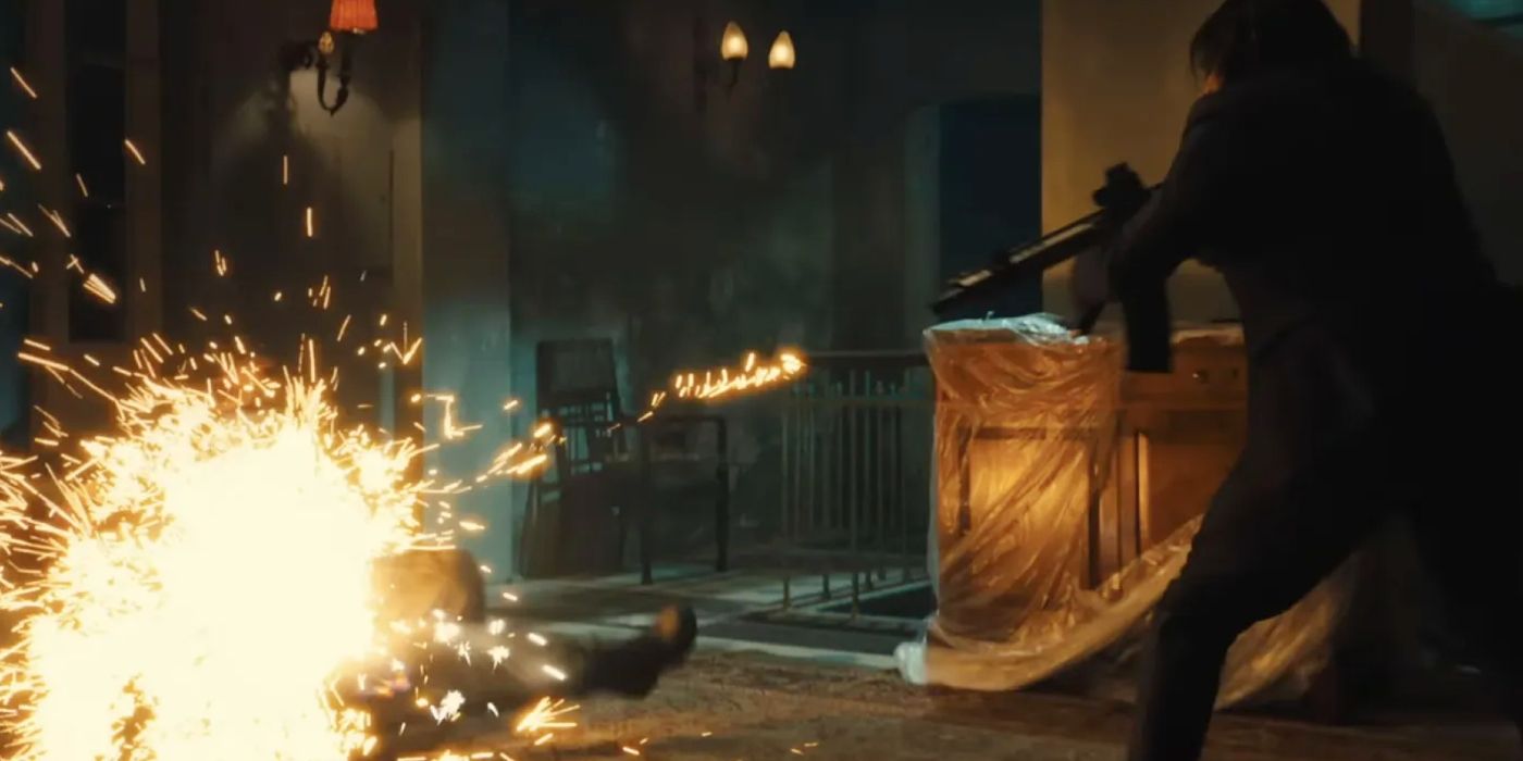 John Wick: Capítulo 4 Ofreció otra oportunidad más para que su protagonista titular causara estragos, esta vez con un arma particularmente aterradora: la escopeta Dragon’s Breath. Expulsando ráfagas explosivas de luz en un espectacular tiroteo en un apartamento, el asesino titular interpretado por Keanu Reeves derrota a sus agresores no solo disparándoles sino prendiéndoles fuego. A lo largo de la franquicia hiperviolenta, John Wick ha logrado fabricar armas incluso a partir de objetos mundanos a su alrededor. Ahí está el lápiz de madera empapado en sangre. John Wick: Capítulo 2 y también el libro de tapa dura entre los dientes del personaje del jugador de baloncesto serbio Boban Marjanović en John Wick: Capítulo 3 – Parabellum.
