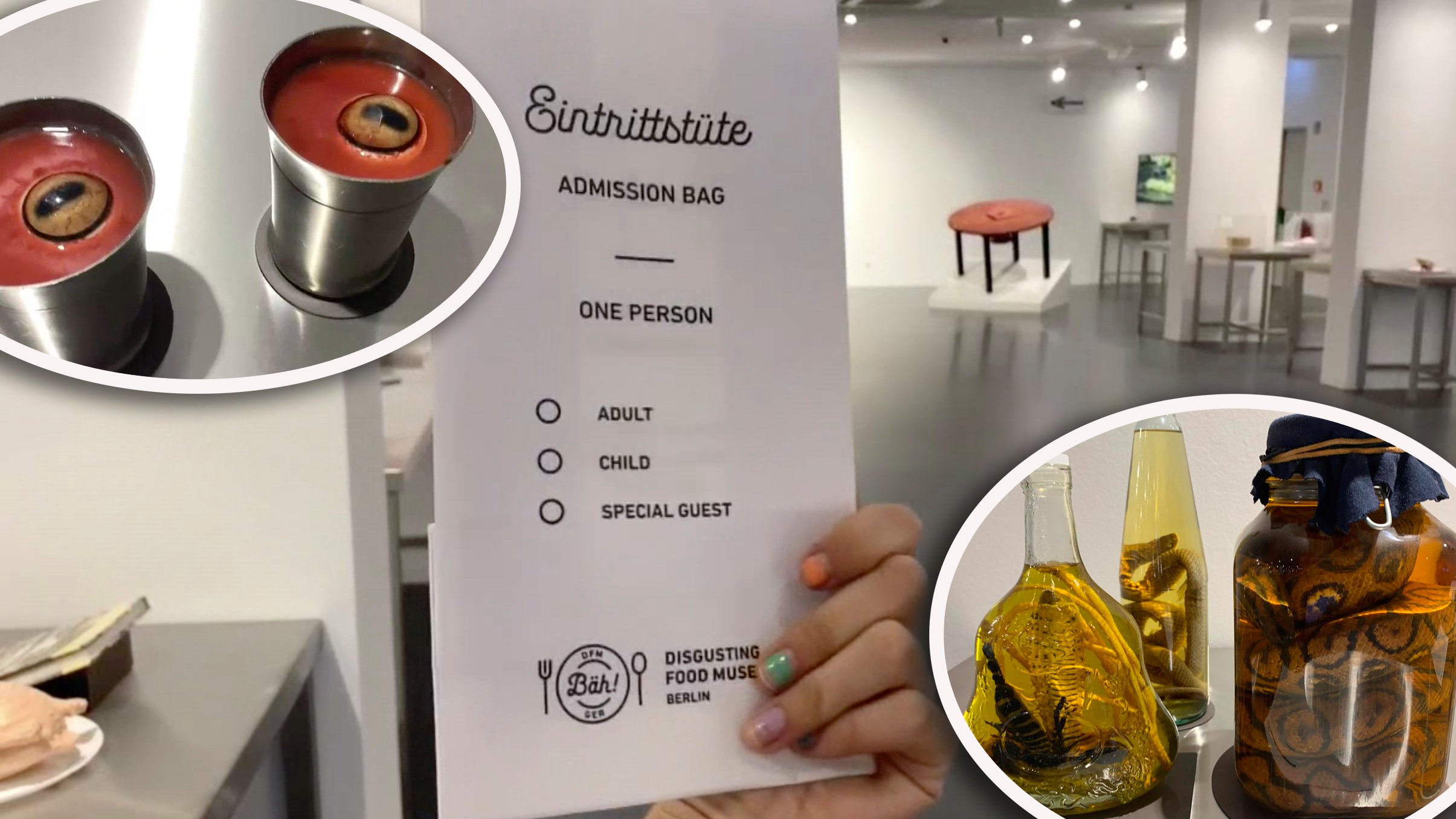 El pene de toro (China) y el cerebro de cerdo (este ingrediente está presente en todo el mundo) son también otras de las bases de platos mostrados en el peculiar museo berlinés.