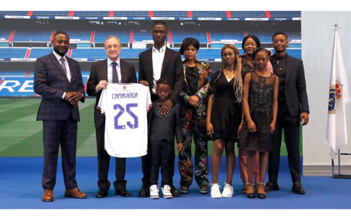 “Creo firmemente que vas a demostrar tu talento, fuerza y espíritu de superación. Camavinga se ha preparado desde muy niño para vestir la camiseta del Real Madrid”, dijo Pérez, quien destacó el interés por ficharle de varios de los clubs más grandes de Europa.