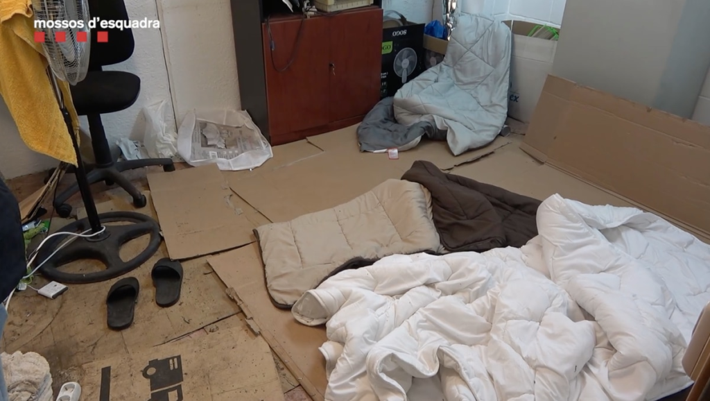 Las imágenes duran tres minutos. Es el resumen policial de la Operación Long. La peor parte son los colchones en el suelo, unos contra otros, ollas esparcidas por mesas, botellas con líquido amarillo, cartones a modo de cama con nórdicos tirados encima. Habitáculos sin ventanas, con ropa tendida en cuerdas y suciedad. Así vivían las 10 personas rescatadas por los Mossos de una organización de traficantes de marihuana. Esclavos de un grupo criminal, algunos de los cuales llevaban un año encerrados en naves dedicadas al cultivo. La juez ha ordenado el ingreso en prisión de cuatro de los ocho detenidos.