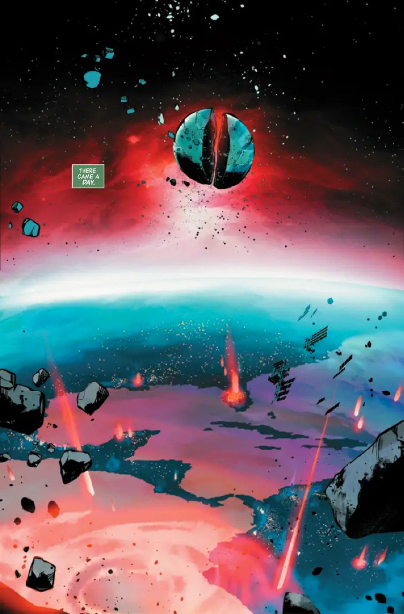 En un adelanto de Jed MacKay, Carlos Villa, Federico Blee y Cory Petit’s Vengadores #7, el equipo del Capitán Marvel yacía agonizante en un tejado. Por encima de ellos, la luna se ha hecho añicos en el cielo, mientras que debajo de ellos un kaiju gigantesco destruye edificios con un solo golpe.