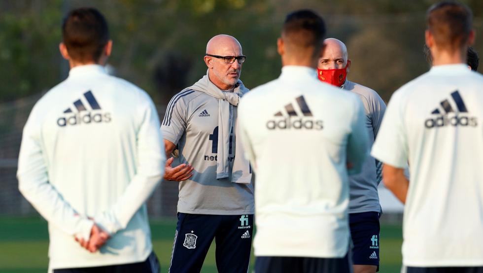 A tan solo tres puntos, con tres encuentros por disputarse, de cerrar la clasificación para el Europeo, el seleccionador sigue a vueltas con la posición de delantero centro. Optó por Javi Puado en dicha posición en el último encuentro, aunque el del Espanyol no suele actuar de referencia y de la Fuente podría seguir probando. Dani Gómez, quien no entró en la convocatoria final contra las Feroe, podría volver y actuar como referencia.