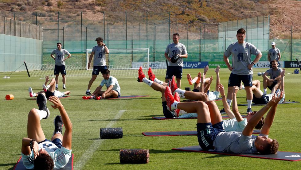 Entrenamientos en los que no participaron los seis integrantes de la convocatoria que disputaron la Eurocopa con la absoluta: Unai Simón, Eric García, Pau Torres, Dani Olmo, Pedri y Mikel Oyarzabal.