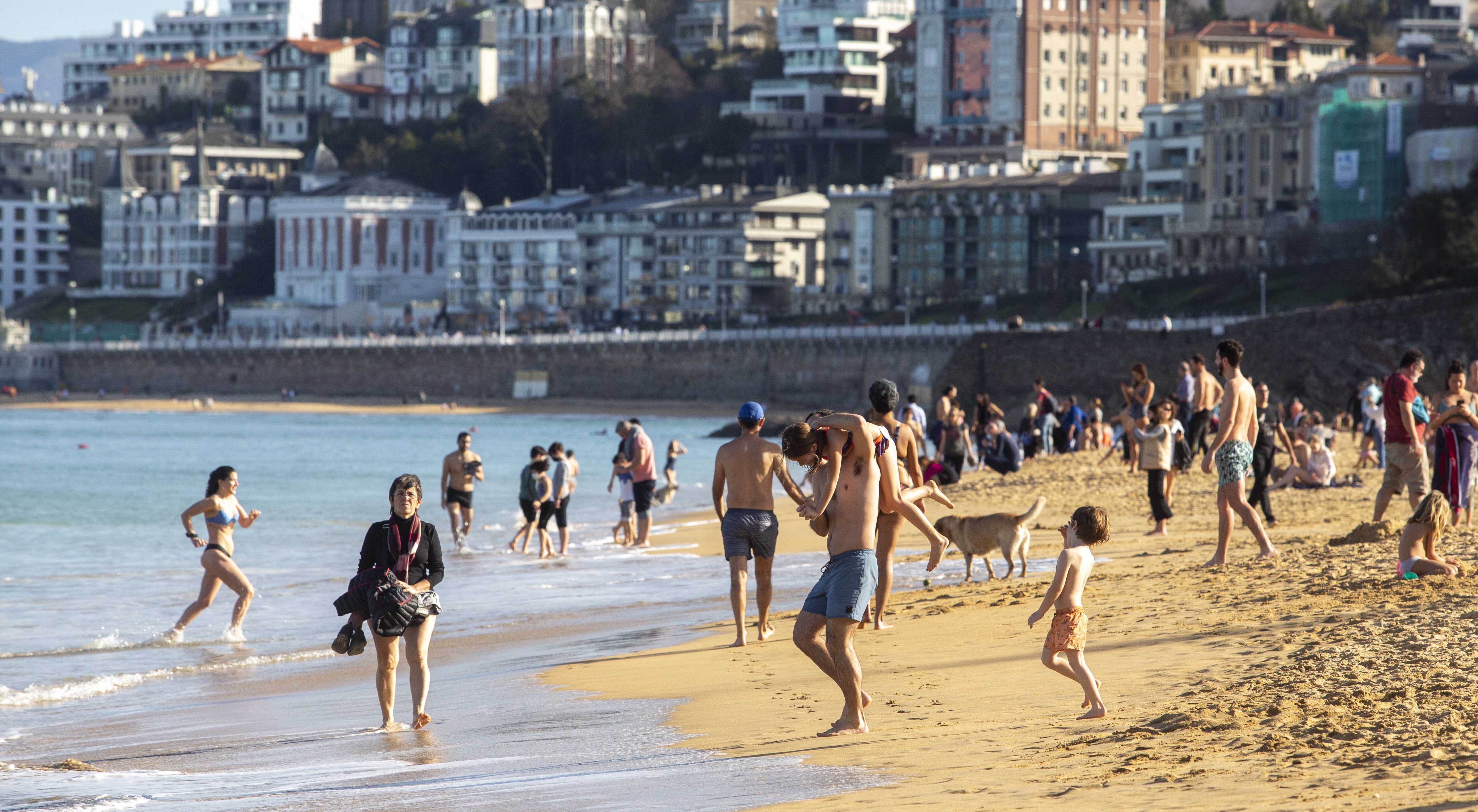 En San Sebastián, a los habituales que celebran cada inicio de año con un baño en las aguas de La Concha este año se han sumado un montón de turistas que han llegado a la capital donostiarra para disfrutar de un día estival de invierno, pero con temperaturas altas de 25 y 26 grados. Diego Sorarrain, ha salido a pasear con su perro, Jazz, a la una de la tarde y “en la poca playa que había, porque había marea alta, no quedaban muchos sitios para extender la toalla“, ha dicho. De hecho, ha utilizado otra ruta para no cruzarse con tanta gente. “La zona de los relojes era la más concurrida. No había sombrillas, pero era un día estupendo de playa” ha comentado.