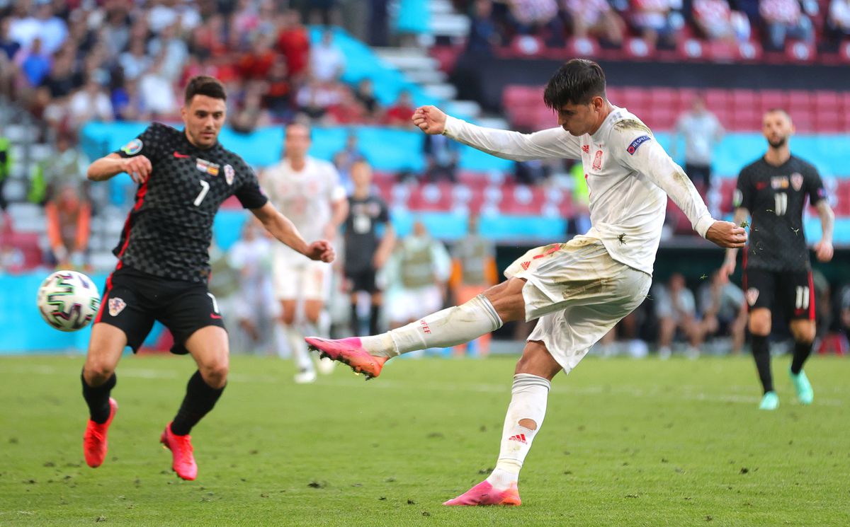 Al equipo de Luis Enrique le bastaba con la voluntad gregaria para encontrar refugio en el balón y, a partir de ahí, articular el juego. Una partida al solitario de la que casi saca provecho Koke. Pedri, clínico, peritó de maravilla un pase filtrado y citó al capitán colchonero a un duelo esgrimista con Livakovic. Koke llegó al asalto al punto de penalti, con el gol de par en par. Pero el portero del Dinamo de Zagreb rebañó la pelota con los pies. Poco después fue Vida el que frustró un cabezazo de Morata. España tenía el partido que hubiera firmado: una mesa redonda en torno al balón y el rival embridado en su rancho, a varias cuadras de Unai Simón. Lo único que molestaba al meta del Athletic era el sol. Por entonces…