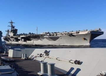Ejercicio conjunto entre la fragata ‘Méndez Núñez’ (sobre cuya cubierta se hizo la foto) y el ‘USS Abraham Lincoln’ (al fondo), el pasado 29 de enero. En vídeo, declaraciones de Borrell, ministro de Asuntos Exteriores en funciones. ARMADA ESPAÑOLA
