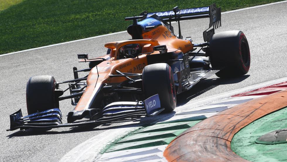 Carlos Sainz salía en este GP de Italia de F1 2020 desde la mejor posición de la parrilla de su carrera en la F1, la tercera plaza, como hizo en el pasado GP de Estiria de F1. En aquella ocasión, lo hacía debido a una gran clasificación en mojado y sabía que en seco lo tenía muy difícil para batallar por el podio, pero en Monza, las cosas eran muy diferentes. Carlos sabía que podía pelear ante sus rivales para ir a por un podio difícil, pero posible. Lo primero que tenía que hacer era realizar una gran salida, y de nuevo, no falló en el momento clave. El español arrancó mucho mejor que Bottas, que era segundo, y lo adelantó antes de la primera curva para colocarse en segunda posición por detrás de un Hamilton imbatible.