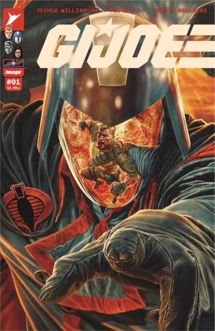 soldado joe #1 – escrito por Joshua Williamson, con arte de Tom Reilly – presenta a la organización Cobra unida después de la alianza entre Cobra Commander y Destro. Los lectores pueden vislumbrar al Comandante sin su máscara en el número, donde el También se representa al villano pellizcando su mano cibernética con un destornillador..